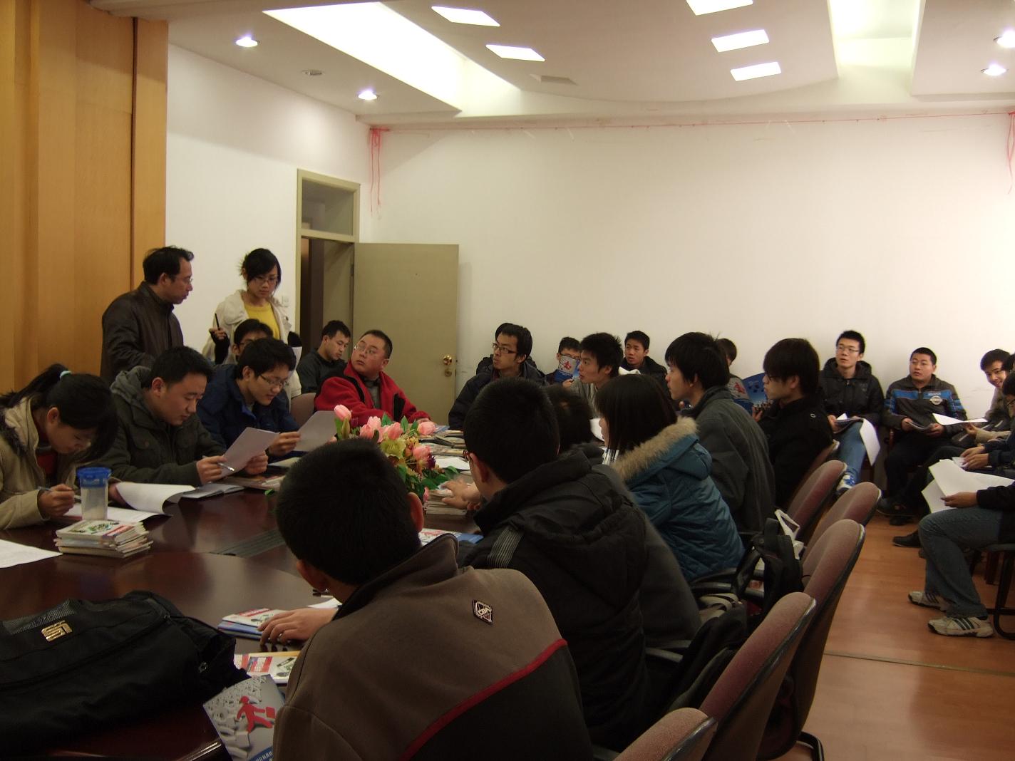 随后,王东老师为全体本科生预备党员们上了一堂“学习实践科学发展观”的培训课程。从科学发展观的产生于发展说起,科学发展观的理论是一代代中国共产党人、中国人民在多年来的实践与思考中发展起来、完善起来的。从解放前一些鲜为人知的历史故事谈起,王东老师介绍了国人对于科学发展观的初步思考与探索。早在新民主主义时期,毛泽东同志的一些文章中就出现了发展观的思考与雏形。任何思想、理论的发展都是会经过挫折的,建国后,大跃进、人民公社就是传统社会主义发展观在探索过程中的曲折、反复的代表。十一届三中全会开启了改革开放的道路,在邓小平同志发展中国特色社会主义的道路上,中国共产党的发展观初步形成了。随着经济的发展,环境与资源开始被人们重视,可持续发展观的提出进一步深化了我们对发展观的认识。进入21世纪,我国的社会、经济发展有了全面进步,发展观的概念得到拓展,十六届三中全会上“科学发展观”开始广为人知。这些历史让预备党员们更加深刻的了解了科学发展观的内涵和意义。