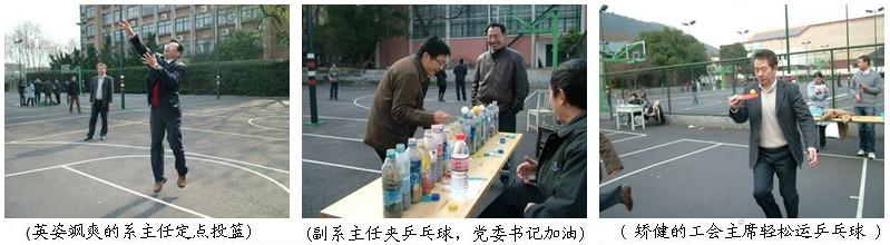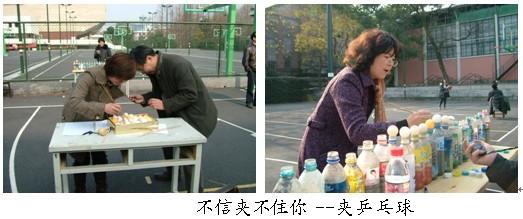 谁说材料系的老师只会做学问?瞧!运动员们一个个身姿矫健,身怀绝技,“稳稳地托住乒乓球,轻松跑过30米”、“15投进14”、“陀螺轻松跳芭蕾丝毫不受地面和时间的限制”。赛场上场面热烈,气氛高涨,尤其是鲤鱼戏珠赛场,呼声和喝彩声不断,场面相当火爆,灵活自如的“鲤鱼”轻轻松松戏“珠子”。整个赛场洋溢着收获的幸福和喜悦,给冬日的校园注入了一股清新的暖流.