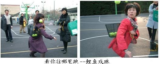 谁说材料系的老师只会做学问?瞧!运动员们一个个身姿矫健,身怀绝技,“稳稳地托住乒乓球,轻松跑过30米”、“15投进14”、“陀螺轻松跳芭蕾丝毫不受地面和时间的限制”。赛场上场面热烈,气氛高涨,尤其是鲤鱼戏珠赛场,呼声和喝彩声不断,场面相当火爆,灵活自如的“鲤鱼”轻轻松松戏“珠子”。整个赛场洋溢着收获的幸福和喜悦,给冬日的校园注入了一股清新的暖流.