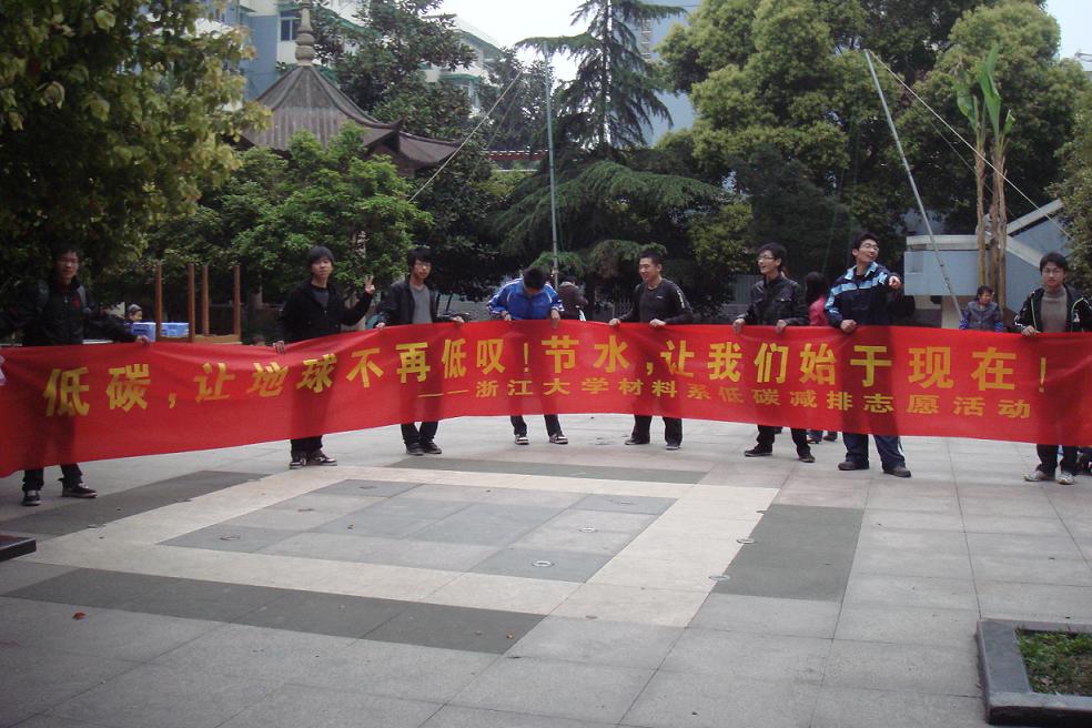 一条写有“低碳,让地球不再低碳!节水,让我们始于现在!”的横幅吸引了周围众多路人的目光。志愿者们积极上前向驻足的小区居民宣传低碳节水理念,发放精心制作的低碳节水小知识宣传单。在向他们宣传的时候,志愿们发现许多人都听说过“低碳”,也有一定的了解,不过这其中的大多数人不知道“低碳生活”究竟应该怎么做,这一方面说明了社会对此宣传的普及度很高,而另一方面也说明了普及得还不够深入。好在低碳的理念已经深入人心,人们迫切想知道应该怎么做才能实现这一构想。志愿者们就介绍给他们一些日常节碳节水的小窍门,住户们在志愿者们的宣传下欣然接受了宣传单,还表达了“回家之后一定要开始施行低碳节水生活”的意愿。