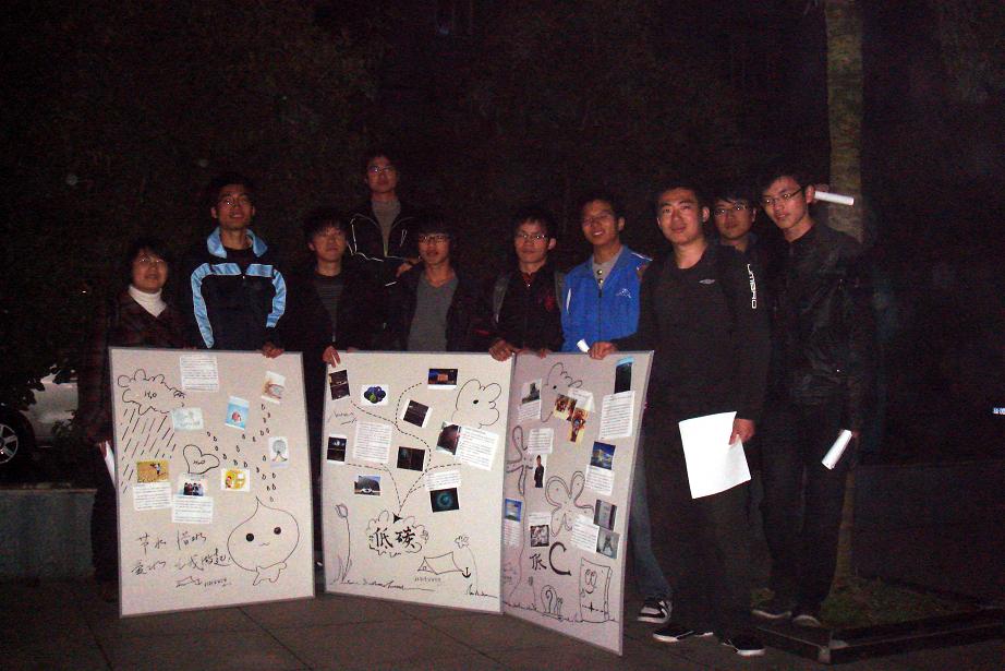 当志愿者们就把之前准备好的三块展板也摆放好时已是晚上6点左右,虽然光线不太好,一些刚吃完晚饭的住户下楼散步看到我们的宣传,还是停下了脚步仔细看展板上的照片和资料,向志愿者们询问有关一些问题,志愿者们也都认真详细地回答了他们。