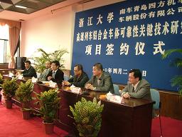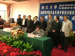 浙大材料系张泽院士与南车青岛四方机车车辆股份有限公司副总工程师丁叁叁分别代表双方签约,签约项目经费为900万元。