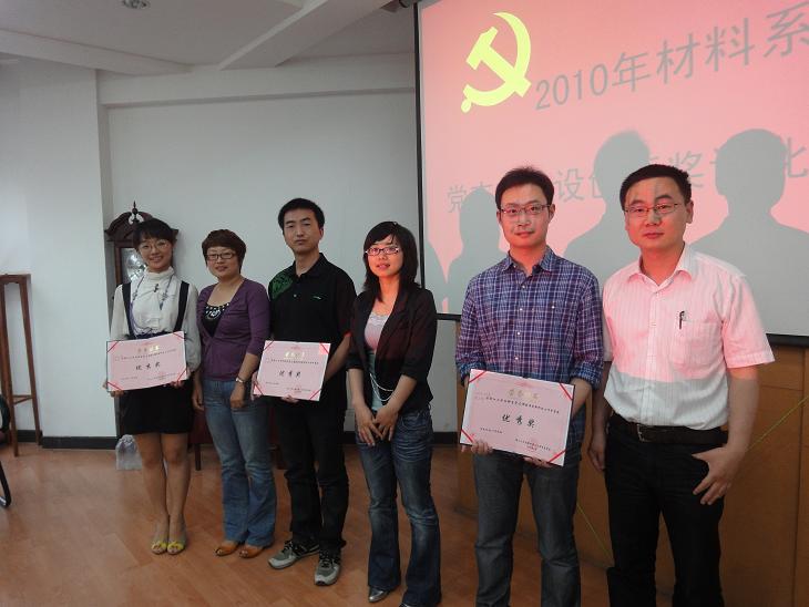 各个党支部通过精彩的PPT向大家介绍了本支部在2007-2009年间党支部建设的创新方式方法,内容丰富,各具特色,例如:无机所第一、二党支部以“爱国爱党 感恩励志”为主题,通过思想建设、组织生活、课余活动、支部建设等四个方面,向大家展示了一个研究生党支部的先进模范形象;再如本科07级第二党支部,以规范的支部建设、有序的活动开展、充分的理论学习向大家描绘了一个拥有诸多优秀成员的本科低年级党支部的风采,各个支部精彩纷呈的展示让在场的所有人都为这些支部的努力而感动,最后经过计分统计,无机所研究生第一二党支部和半导体所研究第四党支部以优异的成绩荣获本次评比活动的创新奖称号。
