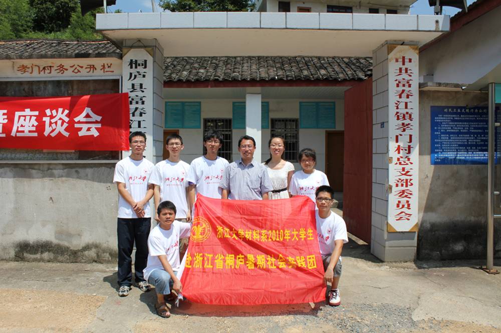 8月1日,研究生暑期一开始,浙江大学材料系赴桐庐暑期社会实践团一行8人就马不停蹄地来到了实践目的地浙江省桐庐县富春江镇孝门村。这支队伍全部由博士和硕士研究生组成,有感于温总理说的“不懂农村和农民就不懂国情”,同学们决定好好利用这次机会,走进农村开展暑期社会实践活动。在团队负责人吴�的积极联系下,团队和富春江镇团委将共同开展为期4天的“求是学子支援新农村建设”主题暑期实践活动。