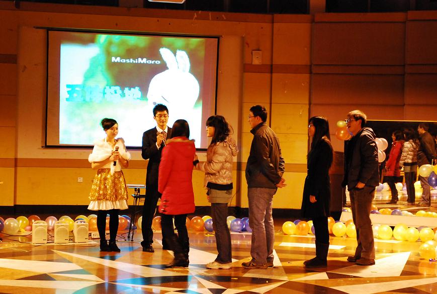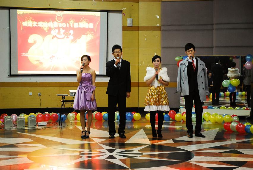最后,在主持人的带领下,在场所有师生一起以气球的爆破声为礼花庆祝新年的到来,祝愿2011年材料系再创辉煌。