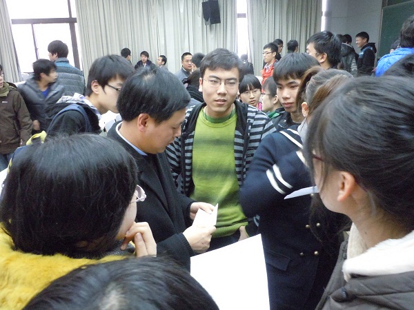 电子显微镜中心的李吉学教授为我们展现了电子显微镜在科学研究中举足轻重的作用;而赵新兵教授在展示中则给同学们介绍了关于热电材料的广阔前景,其幽默生动的讲话迎来了同学们的热情掌声;半导体研究所的彭新生教授、皮孝东副教授分别介绍了半导体薄膜和太阳能电池的研究发展;而王新华教授让我们了解到了储氢材料的性能对于生活生产提供了多大的帮助。材料的世界广阔而绚烂,材料科学在生物领域的运用由程逵副教授为我们一一展现,而孟亮副教授课题组的博士生则向我们介绍了材料在高铁运输业中的重要作用。马天宇副教授也在现场为同学们提供了金属材料有关的课题。