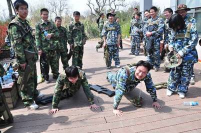 由于支部前期已经组织过重走红军路等系列活动,同学们对本次拓展热情高涨,希望理论联系实际,进行实地操练。大家一大早就来到了西溪湿地国家公园野外拓展基地,换上军装后大家顿时有了军训时的感觉。在周加贝博士的指挥下,激情饱满地合唱了《没有共产党就没有新中国》、《解放军军歌》和《团结就是力量》等红歌,为党的90华诞献礼。随后大家唱了浙大校歌,在拓展基地展现了浙大学子的激情,引得其他队伍的赞叹。