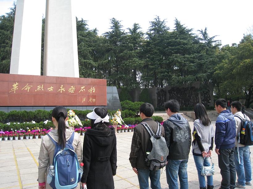庄严的台阶、常青的松柏、飘零的落叶,肃穆而威严。同学们带着肃穆的心情,在党旗的引领下,会集到革命烈士纪念碑前。上午九时许,我们来到了革命烈士纪念碑下,共同瞻仰革命烈士。系挂职团委副书记兼党支部书记路宜主持了悼念仪式。新生党员们在哀乐中向烈士们三鞠躬,低头默哀,悼念革命烈士。