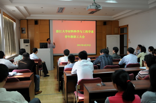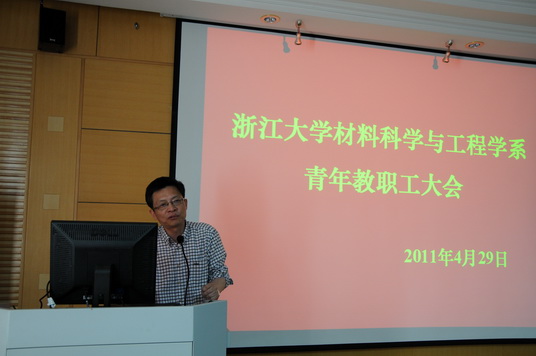 会上,系主任叶志镇教授看到朝气蓬勃的青年教职工,高兴地说,材料学科的发展突飞猛进离不开青年教师的辛苦努力,材料系会争取各种资源,为广大青年教师提供展示自己的舞台。同时,叶主任也对在座的青年教师提出了三点期望:一要保持敬业进取精神,不断拓展思路,激活创新思维,在材料领域充分展现自己的才能,为材料学科创世界一流做强有力的后盾;二要有宽大的胸怀,“海纳百川,有容乃大”,工作中加强相互学习和合作,促进学科多元化发展;三要要有不断学习的习惯,学习是一辈子的过程,无论在什么时候都不要懈怠,不断的充实积累,总有一天会厚积薄发。
