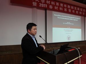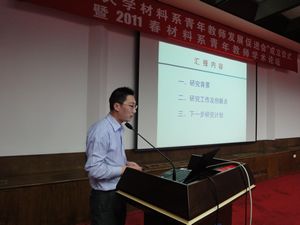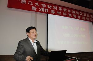 简短的成立仪式结束后,由材料系青年教师发展促进会第一届会长朱铁军教授主持了2011春材料系青年教师学术论坛。材料系入选浙江大学首批求是青年学者的10位青年教师,就自己研究方向的国内外动态、目前自己研究方向的进展以及“十二五”期间的研究计划做10分钟左右的PPT汇报,报告结束后进行5-10分钟的提问、讨论。