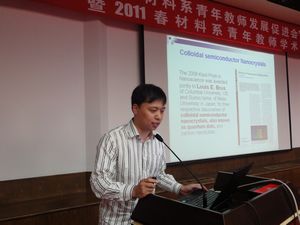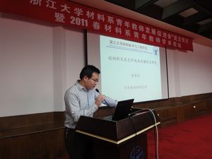 简短的成立仪式结束后,由材料系青年教师发展促进会第一届会长朱铁军教授主持了2011春材料系青年教师学术论坛。材料系入选浙江大学首批求是青年学者的10位青年教师,就自己研究方向的国内外动态、目前自己研究方向的进展以及“十二五”期间的研究计划做10分钟左右的PPT汇报,报告结束后进行5-10分钟的提问、讨论。