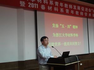 正值“五·四”青年节之际,浙江大学材料科学与工程学系在邵科馆二楼多功能厅举行了“浙江大学材料系青年教师发展促进会成立仪式——暨2011春材料系青年教师学术论坛”。材料系近四十名教师和部分研究生、本科生代表120余人参加了此次学术论坛。