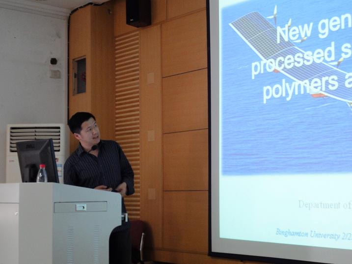 苏州大学的马万里教授首先做了关于有机物及量子点在太阳能电池发展中的应用的报告。马教授2006年获美国加州圣塔芭芭拉大学物理系博士学位, 2010年加入苏州大学功能纳米与软物质(材料)实验室。 发表学术论文十余篇在国际材料和化学领域方面的著名刊物上。2004年其论文引用数量超过2200次,其中一篇关于太阳能光伏电池的文章引用次数超过1200次,成为近年来该领域引用次数最多的文章。