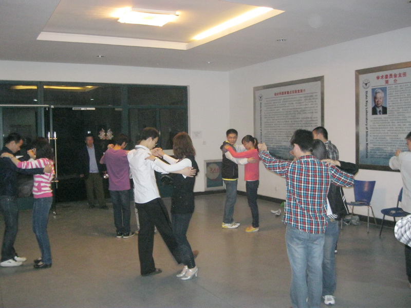 2011年5月22号晚,硅材料国家重点实验室在半导体厂2号楼一楼大厅举行了以“飞扬舞步 曼妙青春”为主题的交谊舞教学舞会。舞会主要为了丰富实验室同学们的课余生活,促进交流、增进友谊,感受交谊舞优美舞步中的乐趣。原校摩登舞队队长陈利升、副队长黄薇薇作为舞蹈嘉宾应邀到场为同学们做现场教学并带来精彩演出,20余名同学参加了本次舞会。