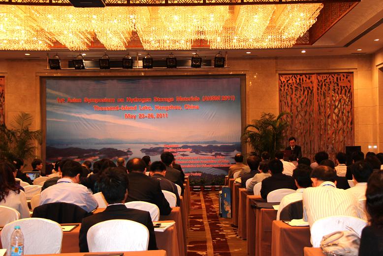 第1届亚洲储氢材料学术研讨会(The 1st Asian Symposium on Hydrogen Storage Materials,AHSM 2011)于2011年5月23–26日在杭州千岛湖顺利召开。此次会议由浙江大学主办,材料科学与工程学系潘洪革教授负责组织。本届大会共收到来自中国、日本、韩国、印度、新加坡等5个国家的论文摘要共98篇,来自5个亚洲国家的143名代表出席了本次大会。代表中云集了几乎全部的亚洲顶级储氢材料研究及其应用方面的专家。为了扩大交流,会议还特别邀请了来自美国、瑞士和瑞典的知名储氢材料专家参加会议。