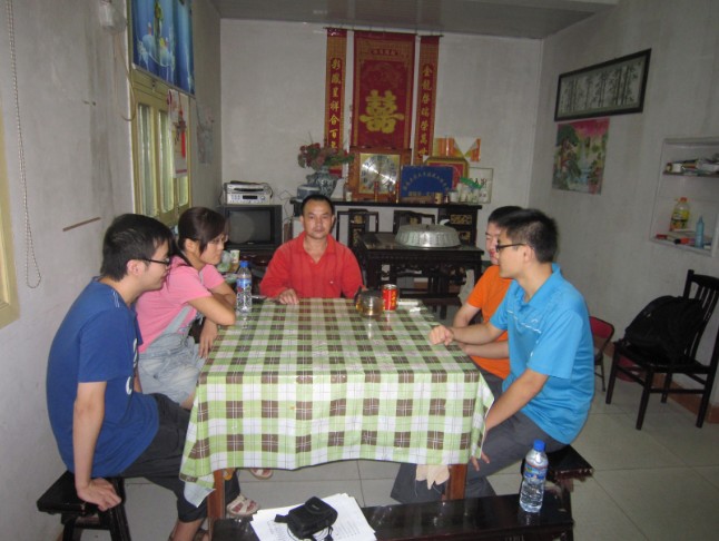 李水根首先向队员介绍了思溪村能源的使用情况,村民的日常用电主要来自于离村子不远的一个水力发电站,该水力发电站作为村里能源的主要来源,已经有10余年的使用历史了 。部分村民家中还结合沼气发电供日常使用。村子里只有极少数的几家安装了利用太阳能的设备(主要为太阳能热水器),当队员们提到利用太阳能电池发电时,李水根表示对这方面并不了解,以前也没有听说过,但对这方面的知识有着浓厚的兴趣。同学们向他详细的介绍了太阳能发电方面的科普知识,并与其讨论了在该村实行太阳能发电的可行性。李水根给队员们提出了很多有建设性的意见,例如在他们村子里农田遍布,很难找到大片的空地来布置发电装置等同学们没有想到的问题。