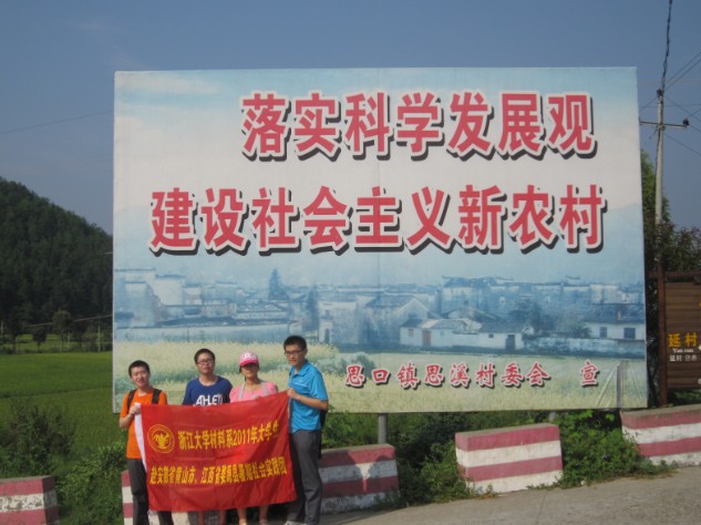 8月22日星期一, 浙江大学赴江西省婺源县社会实践团开始了“推广清洁能源(太阳能),服务新农村建设”的活动。实践团的队员们根据熟悉当地情况的村民介绍,选择了阳光充足的思溪村作为本次活动的地点。刚到思溪村,队员们就感受到了这是一个朝气蓬勃的村庄,大片的稻穗,成群的鸡鸭,在农田里辛勤耕作的农民,勾勒出了一幅反映我国新农村建设成果的美好图景。