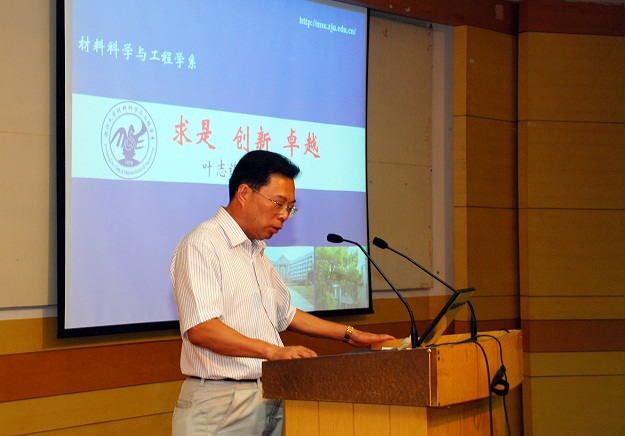 开学典礼上,材料系系主任叶志镇老师代表系全体师生对2011年加入材料系的硕士、博士研究生新生表示热烈的欢迎和衷心的祝贺。他从学科设置、组织机构、师资队伍、学生培养、科研成果、获奖情况等方面向同学们介绍了材料系及各专业的相关情况,还跟同学们一起深刻解读了浙江大学办学理念和人才培养目标,教导大家在学习科研过程中时刻铭记浙江大学“求是、创新”的校训,严肃看待学术不端行为,志存高远、勇于创新、永攀科技高峰。最后,叶老师表示:希望同学们尽快完成从本科到研究生由学习型到研究型的转变,适应研究生阶段的学习,敢于向自己挑战、向困难挑战、向权威挑战,为成为浙江大学卓越人才而努力奋进。
