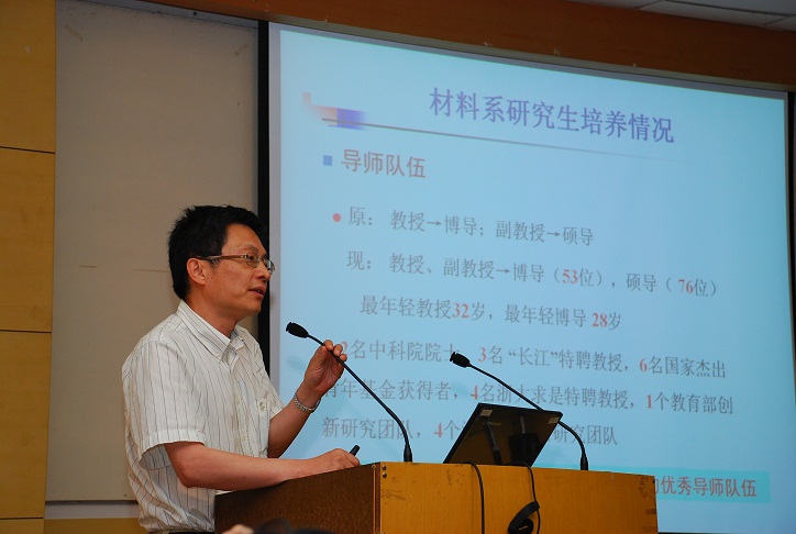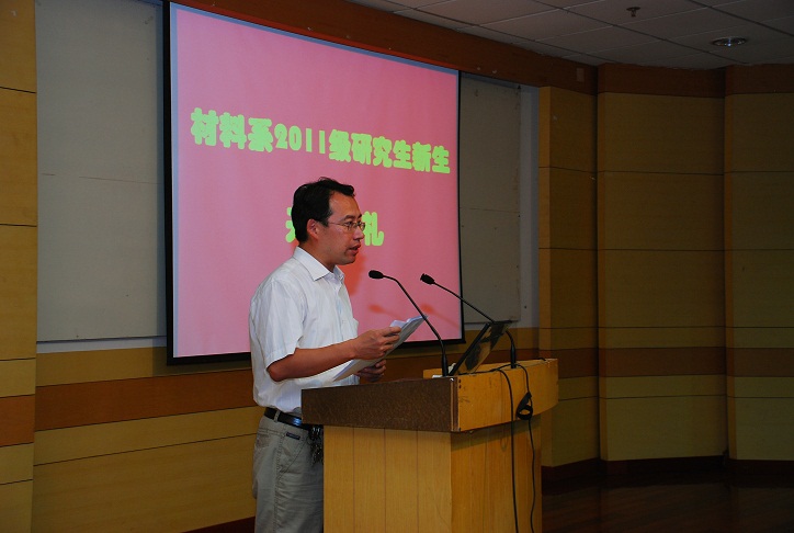 随后,主管研究生教育教学工作的系副主任翁文剑详细地向各位新生介绍了学校以及材料系研究生教学培养各个环节上的相关政策要求,他表示,今天材料系研究生教学培养已到国内领先水平,但今后材料系研究生教学培养上能在国际上产生更大影响,需要在座各位的努力和支持,希望大家都能为建设”一流水准、接轨国际”的研究生教学培养体系而努力。
