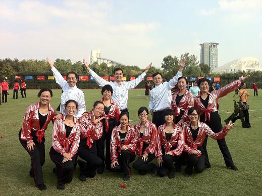 2011年10月21日上午,紫金港校区田径场上,在雄壮、嘹亮的国歌声中,2011年浙江大学运动会徐徐拉开了序幕。参加开幕式排舞表演的材化联队的教工们,经过在百忙之中抽空练习后,终于圆满地完成了表演任务。