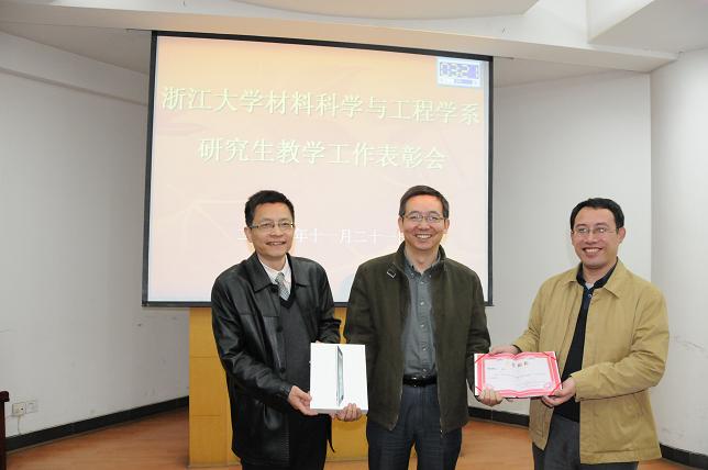 11月22日下午,分管研究生教育工作的领导王东书记与翁文剑副系主任向参加会议的获奖者叶志镇教授、杨德仁教授颁发证书和奖品。