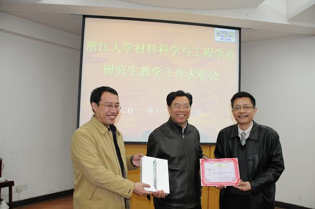 在材料系全体教师的努力下,材料系研究生教育已取得相当的佳绩,并进入到一个高水平的发展阶段。在这些佳绩中,较为突出表现是:近几年来,我系每年都获“全国百篇优秀博士论文提名奖”。为此,经党政联席扩大会议讨论,决定材料系设立了“材料系研究生教育重要贡献奖”,表彰曾培养出“全国百篇优秀博士论文提名奖”的博士生导师陈湘明教授、杨德仁教授、叶志镇教授和潘洪革教授,感谢他们在研究生教育工作中所付出的辛勤劳动以及他们为材料系争得的荣誉,同时,也鼓励材料系全体博士研究生指导教师在研究生培养中倾注更多心血,争取在“全国百篇优秀博士论文奖”上有新的突破,为材料系研究生教学培养在新阶段发展中做出更大贡献。