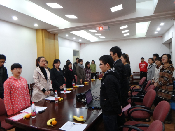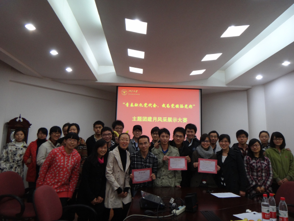 2011年11月24日18时30分,材料系2011年团建月风采展示在曹光彪大楼的材料系会议室正式开始。此次总结报告会将检验08级、09级各个团支部开学以来的团建成果,由材料系团委副书记徐晗老师和杨倩老师、本科生党总支委员李水丽和系挂职团委副书记黄静露同学担任评委现场评分,并做最后的评选表彰工作。