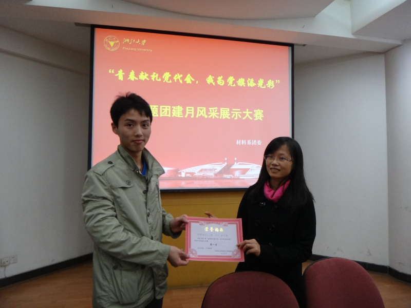 展示会的最后,积极开展活动的优秀团支部得到了系里的表彰。0902团支部、0803团支部、0904团支部分别获得了团建月风采展示大赛第一、二、三名。这份荣誉,不仅仅是对团支部活动的一种肯定,也表明了学校和材料系对团建工作的重视。材料系将继续大力支持各类的团建活动的开展,提升学生个人修养,促进团员交流活动。