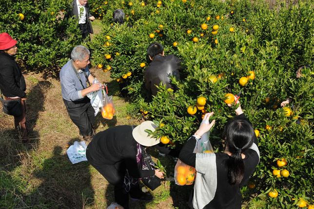 游览千岛湖后,大家游性高涨,驱车来到当地的桔园,沿着坎坷的小道,拿着剪刀和袋子,流连在浓密的桔园中,挑选着心仪的桔子。放眼四望,金灿灿的果实挂满枝头,自有一种回归自然的朴实与恬淡。吃着农家饭,品着农家菜,看着鳞次栉比的幢幢新楼,拎着沉甸甸的劳动成果,不由感慨现在中国农民日新月异、今非昔比的变化。