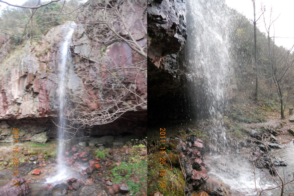我们从大岚镇出发,步行约5公里的山路,来到了四明山国家森林公园。放眼望去,连绵起伏的群山与竹林相依,形成天然的屏障,为游击战创造了条件,淡淡的雾霭遮蔽着秀丽的山峰,更为四明山增添了一份神秘。随后我们来到了浙东游击纵队司令部的革命遗址��鹁鸪岩。导游介绍说:“鹁鸪岩就是因为传说有鹁鸪鸟在这里啼鸣而得名的。流水的尽头是断崖,水冲下至崖谷就成了颇有气势的瀑布,但在山崖上只见其声不见其影。从山崖旁边的小路可直抵山谷,迎面是一道峭壁,落差大约20米的瀑布在谷底半月形的洞口前,形成了四五米宽的水帘,注入洞前的圆形水潭。”四明山作为抗日战争时期全国19个革命根据地之一,曾有无数革命志士在这里留下了感人的故事。鹁鸪岩地处四明山深处,地势险要。当地村民告诉我们,当年新四军浙东游击纵队司令部就曾用这个可容纳数百人的山洞储藏物资、隐蔽伤员。北撤后,共产党人曾在一段时间内,带着一部电台以此为指挥部,及时接收来自延安的命令,与敌人展开顽强斗争。可以说,这个水帘洞见证了一段光辉历史。