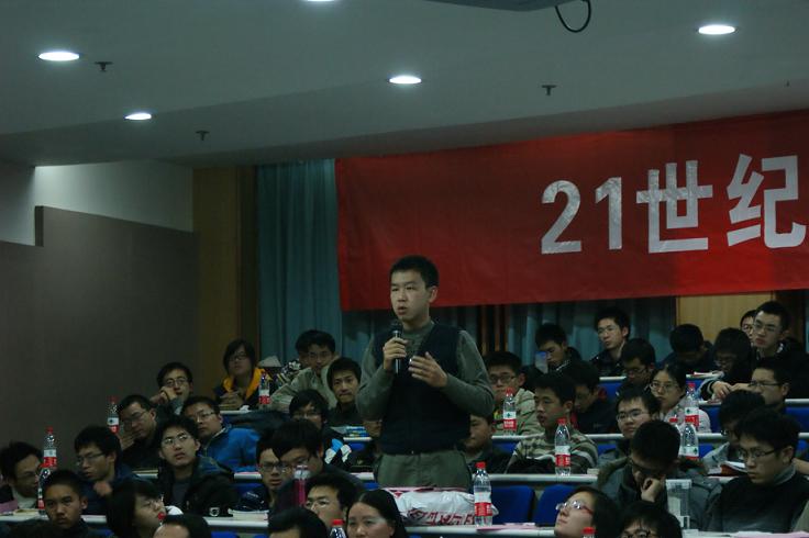 张泽院士的讲座从讲述自身故事开始,回忆往昔改革开放前的成长时光,又对比了21世纪新一代大学生不论是在就业还是在成才、科研抑或生活中面临的前所未有的挑战,说到了现在的大学生在21世纪面临着很多自己不曾面临的问题和挑战,比如说住房问题,工作问题,科研中的浮躁心理和公民素质的衰退等等。张泽院士生动活泼的一个个真实的故事和语重心长的话语让在场的每一名听众都意识到了自己面临的挑战。但同时,中国还处于“世界工厂”的状况下,而改变中国经济结构,让中国创造更多财富和价值的途径就是发展自主科技产权,要创新,更要创业,要做精英,而不能仅仅看到眼前的利益,只考虑眼前的事情。