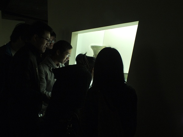 现在博物馆正在举行古越青瓷和微芙彩俑的专题展。在古越青瓷的展馆,同学们认真观看,在一个个青瓷前流连。栩栩如生的陶俑,晶莹剔透的瓷盘都给同学们留下了深刻的印象。同学们还结合我们自己的专业讨论起了陶瓷烧结技术,看到一个个烧制精美的展品,深深为我国古代即能掌握这么精深的陶瓷烧结技术而感叹,也为我们民族文化而骄傲。