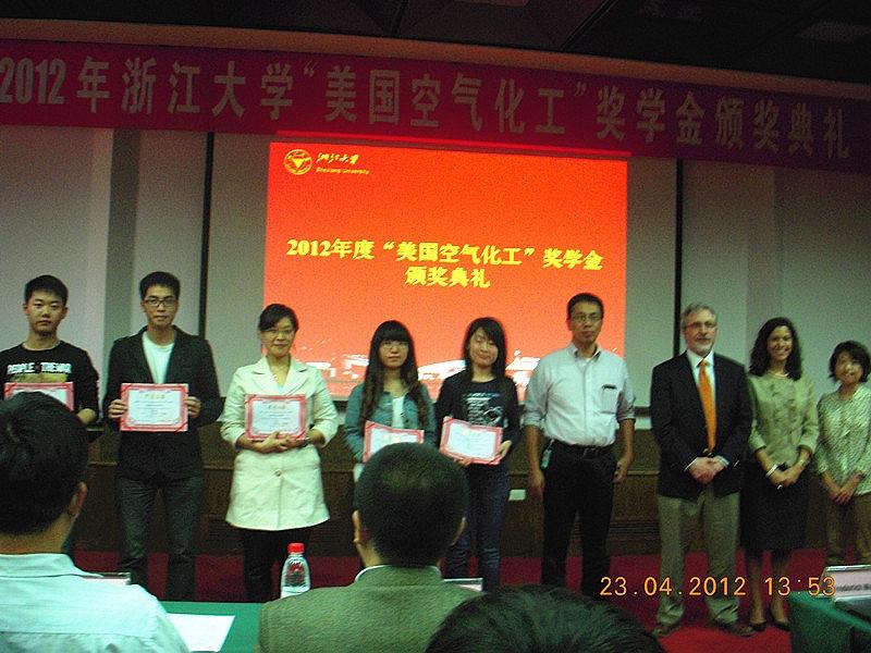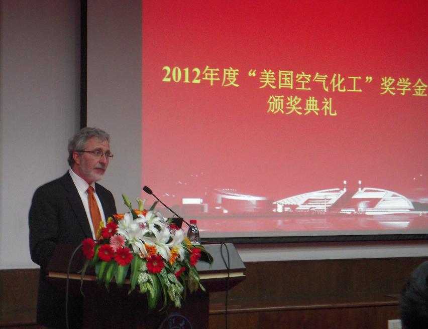 会上,主持人首先介绍了空气化工奖学金背景和到场来宾。“美国空气化工”奖学金由空气化工产品(中国)投资有限公司于2010年首次设立,分别奖励浙江大学能源工程学系和材料科学与工程学系成绩优秀、具有创新能力、综合表现突出的全日制博士生1名、硕士生2名和本科生2名,一次性奖励金额博士生每人6000元,硕士生每人4500元,本科生每人3000元。经学生本人申请,导师、班级、系所推荐,浙江大学能源系和材料系奖学金评审委员会初评,按1:3人选比例向空气化工(中国)投资有限公司推荐,公司方面最终选拔确定获奖人选。
