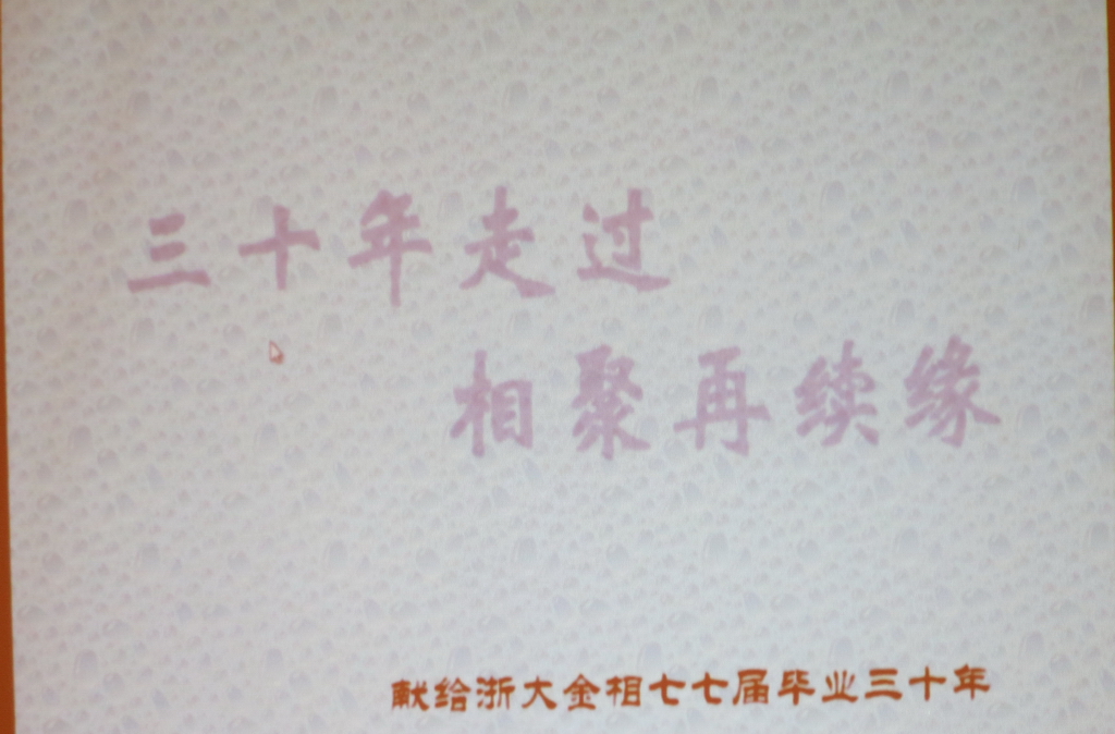 2012年4月20日浙大材料系金相专业77、78级同学相聚在之江饭店,庆祝自己毕业30周年。如今虽然有的同学在企业,有的在高校,有的在政府机关,有的自己创业,有的在国外著名公司或高校,他们都在各自的工作岗位上颂扬求是精神,作出了成绩,为母校争光。30年弹指一挥间,昔日的意气风发的青年,如今已是双鬓斑白,所以他们更加珍惜今天的相聚。在当天的晚会上他们畅所欲言,从进学校当年的学生生活开始聊到了毕业后各自的工作、生活,再到这次30年后的同学聚会,感慨万分。抚今追昔,感叹万千,经过30年的改革开放,发生了翻天覆地的变化,无不为祖国、为母校和母系的发展感到自豪。他们频频举杯,感恩昔日恩师的教诲,祝愿老师们身体健康,生活幸福,并赠送了同学们亲自定制的礼品。