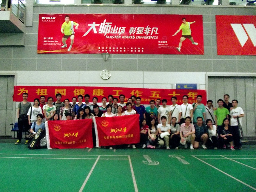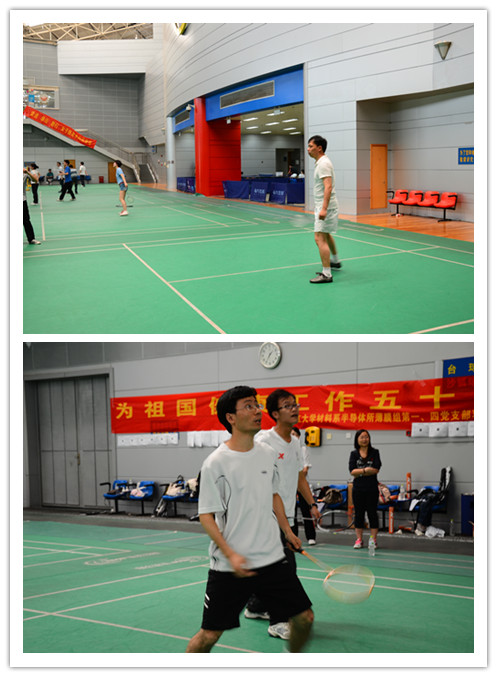 团体赛是本次羽毛球赛的重头戏。为了在团体赛中取得好成绩,各课题组在比赛前一周就开始了紧张的训练。这里特别值得一提的就是叶志镇老师。叶老师能够在百忙之中抽出半天的时间来参加比赛,我们都很感动。虽然叶老师年纪稍大了些,但是在球场上的表现与我们相比毫不逊色。最终叶老师带领其课题组夺得了团体赛第一名,何海平老师组和吕建国老师组凭借其不凡的实力分别获得第二名和第三名。