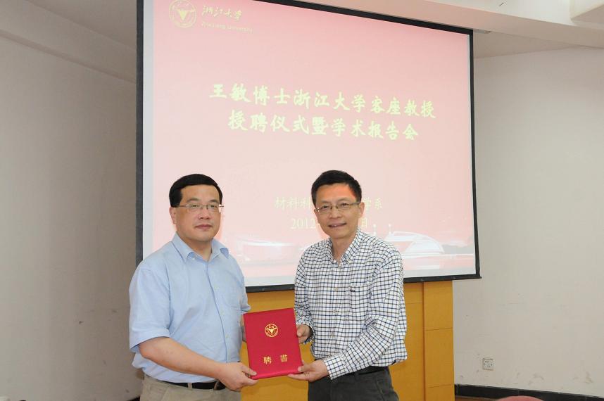5月31日下午,香港大学机械工程系王敏教授受聘浙江大学客座教授仪式暨学术报告会在材料系会议室举行。授聘仪式由材料系副主任翁文剑教授主持。