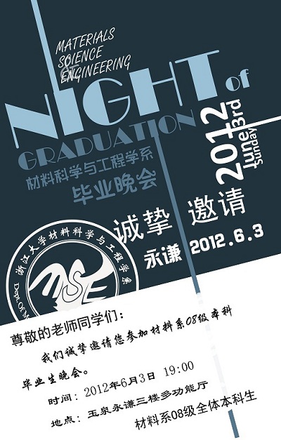 “你好,我材好!”——材料系2012年毕业晚会诚挚邀请您的参加
