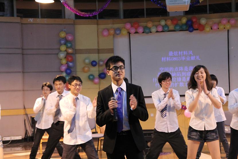 相声结束后,刚刚在三好杯篮球赛中代表材化联队获得季军的林清豹为大家带来了胜利的消息,并趁热打铁演唱了一首《海芋恋》。材料系著名歌手徐超带来了《What I’ve done》,在副歌呼之欲出的一刹那,现场气氛到达了最高点。晚会最后一个节目是组曲《最呀最摇摆》,材料0804班的同学们在热舞中登场,一个个分别登场唱出自己心中的感想,对大学生活表达自己的开心与不舍、留恋和祝福。