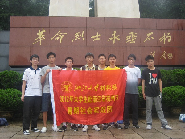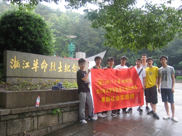 2012年6月23日星期六,浙江大学材料科学与工程学系赴杭州市暑期社会实践团成员准时在早上八点集合于蓝田学园门前。天空灰蒙蒙地飘着小雨,像是还没睡醒一样。然而乌云脚下的同学却一个个精神振奋,因为他们将要踏上参观浙江烈士纪念馆的旅程。