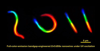 光电系研三杨宗银的《彩虹》获得了本次比赛一等奖和最佳原生态奖。传统的VLS法得到的纳米线荧光颜色单一,在导师童利民教授的指导下,杨宗银在不下500次的尝试后终于提出了全新的移动衬底VLS法。四根带隙梯度过渡的硫硒化镉锌(ZnCdSSe)纳米线在衬底上用探针排列成全彩的“2011”图案。相关研究成果也在著名期刊《美国化学会志》(JACS)和《纳米快报》(Nano Letters)上发表。评委会说,这幅作品获奖,是因为其中体现的学术价值和敢于创新的科研精神都是值得肯定和鼓励的。