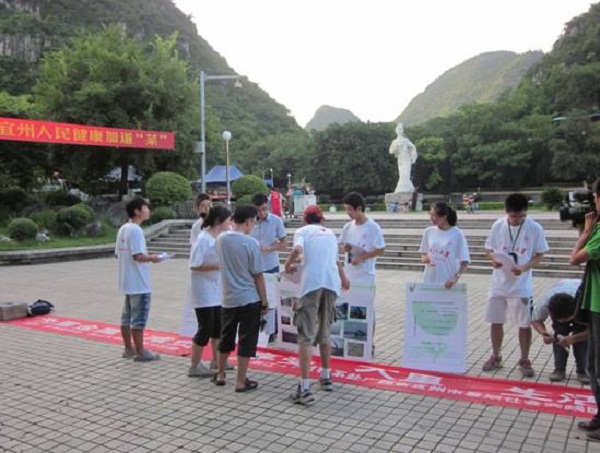 本次活动由浙江大学材料系团委和宜州市团委共同主办,浙江大学材料系赴广西宜州社会实践团承办。活动得到了宜州市团委的大力支持和帮助,并邀请宜州电视台的记者进行了采访和报道。实践团成员的热情讲解吸引了很多宜州市民前来了解,现场十分热闹。其中一位市民在受采访时说道:“重金属污染在我国已经十分普遍,我们很有必要了解一些现状及应对措施。感谢浙江大学的同学们给我们这样的宣传。”