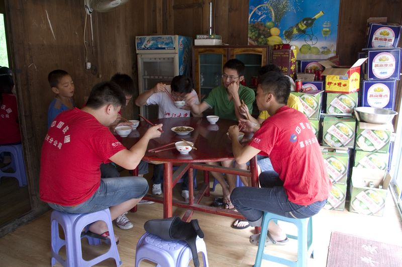 一下午的调研收获颇丰,我们了解到,当地很多家庭中,经济稍好的都送孩子们去县城里上学了,只有家庭经济困难的孩子们在乡中心小学就读,而离学校较远的村庄,孩子们往往在学校里住校,虽然可以自己带米在学校的锅炉中蒸饭,但是菜也必须从家里带。新鲜的热菜自然不能保存好几天,孩子们带的往往是梅干菜、咸菜一类易于保存的菜,但是对于正在长身体的孩子们来说,这样缺乏营养缺乏维生素的菜,对于孩子们的生长发育是非常非常不利的。队员们都唏嘘不已,也深切感受到“免费午餐”项目能够带给孩子们的切切实实的帮助,和未来的希望。