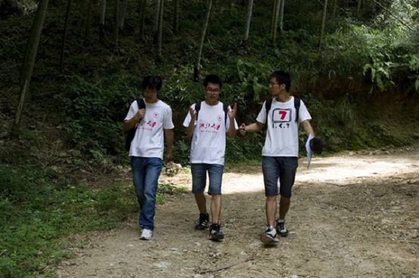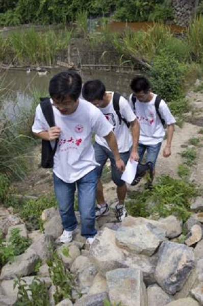 队员们走在家访的乡间小路上