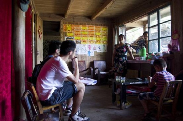 7.13号一大早,实践队队员们匆匆吃过早饭,带上事先为孩子们准备的小礼品,就踏上了赴王处村的家访之路。队员们走访了王一民、徐静微、梅鹏菲小朋友等的家,与孩子们的家长进行了详细地交谈。通过家访,我们发现大多数孩子的父母都在外打工,都是由爷爷奶奶照顾,平常吃的菜也是爷爷奶奶自己种的一些茄子、南瓜、土豆等蔬菜;肉只能到景南乡去买,大半个月才能吃上一次;家里养的鸡生的蛋要拿到县里去卖,添补家用,平常很难吃到。