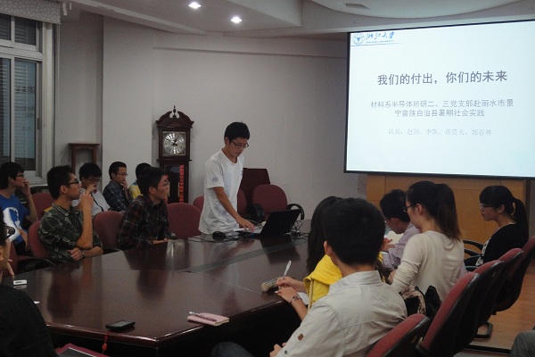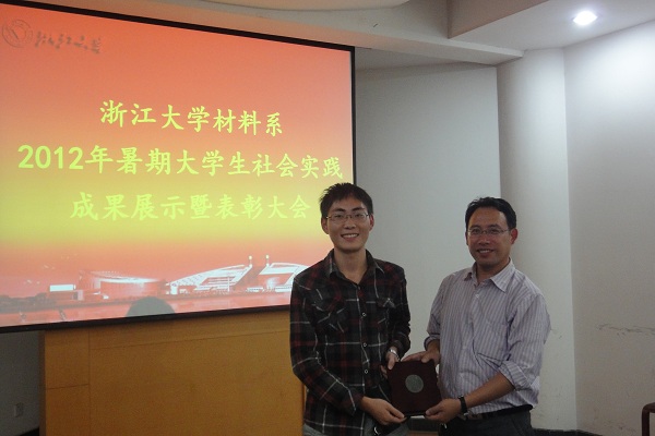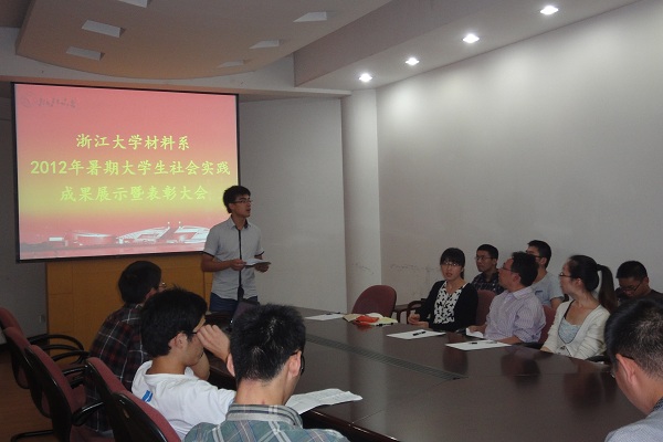 2012年9月17日晚,材料系2012年暑期社会实践成果展示暨表彰大会在曹光彪大楼324会议室隆重举行。材料系党委书记王东老师,团委副书记杨倩、张序清以及兼职辅导员徐晗老师出席会议。