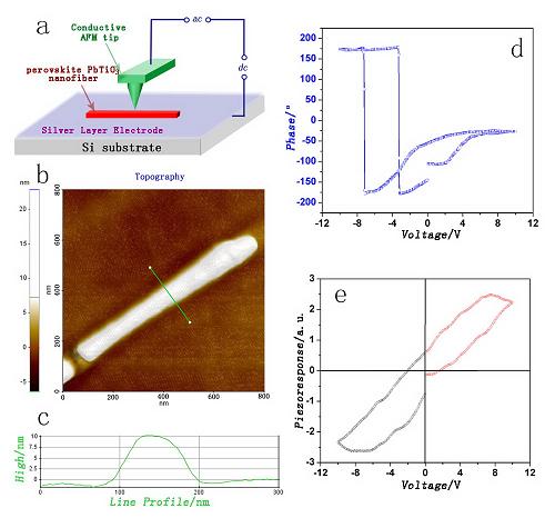 图1:PbTiO3单晶纳米纤维的压电力显微镜(PFM)研究