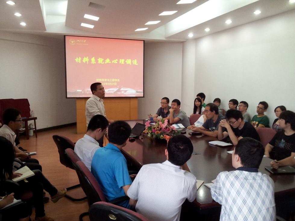 为更好的服务材料系学子,针对即将就业的研究生所面临的各种问题,帮助学生树立健康良好的择业心态,材料系开展了有层次有系统的就业指导活动。9月27日下午,材料系特邀嘉宾校研究生院研究生事务管理办公室副主任、国家二级心理咨询师何俊杰老师为本系研究生做了主题关于就业心理调适的讲座。
