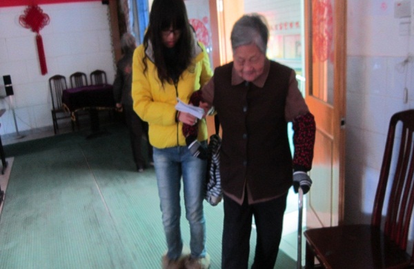 团支书首先向老人们介绍浙江大学材料1005团支部概况,并代表全体同学向老人表示敬意和祝福,希望通过此活动为老人在寒冷的冬季带来温暖和欢笑。老人们露出开心的笑容,纷纷表示感谢。