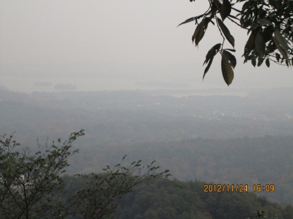 渐渐到达山顶,向下眺望西子湖畔,夕阳晕红了湖面,雾气朦胧,颇有梦幻之感,李同学忽然想起王安石登飞来峰时的诗句“会当凌绝顶,一览众山小”,山不在高,胸襟开阔,固然也有会当凌绝顶的气魄来。