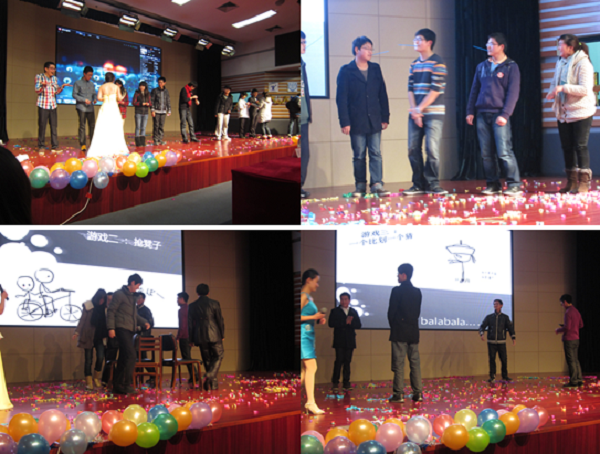 台上在忙,台下的也没有闲着。节目的间隙中还穿插了多个游戏和抽奖环节,以增加和观众的互动。这些环节也充分调动了同学们的积极性和参与度,使晚会真正成为了材化一家人的晚会。但是如此美妙的时刻总是显得分外短暂,经历了两个小时的欢声笑语,晚会也渐渐走向了尾声。在主持人优美的《time to say goodbye》歌声中,晚会最终落下了帷幕。但是这次晚会的回忆,却会和这一年的酸甜苦辣一同珍藏于我们的脑海深处。